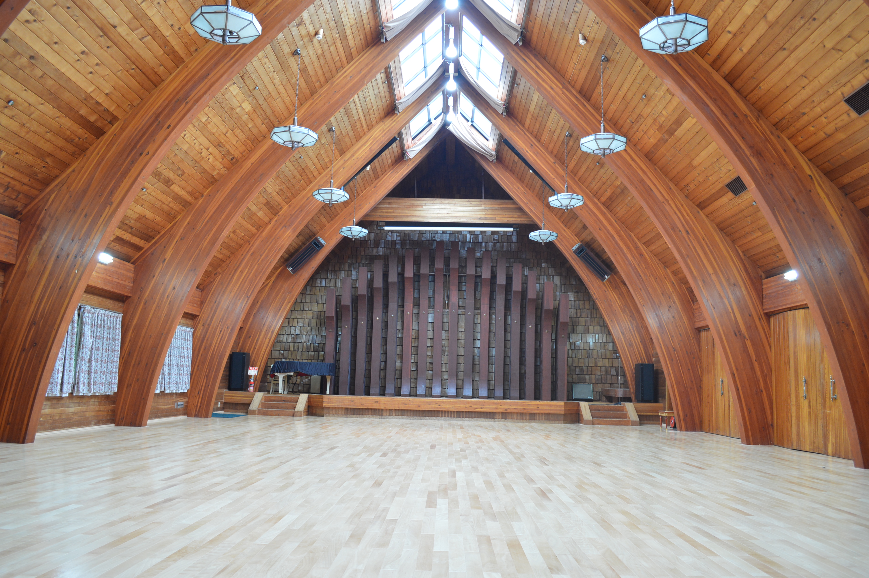 曲線を駆使してデザインされた「木」の温かみあるホールです。
